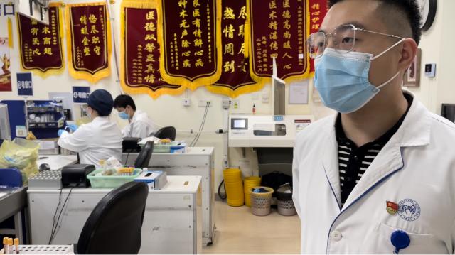 在这个没有玻璃窗的情况下,李富升和他的同事经常在抽血后回答病人的问题,解释某个指标箭头高是什么意思,解释为什么有些报告需要更长的时间。“用心保证每一管血的质量,是对最终临床决策的责任,患者可以理解这一点。”李富升说。