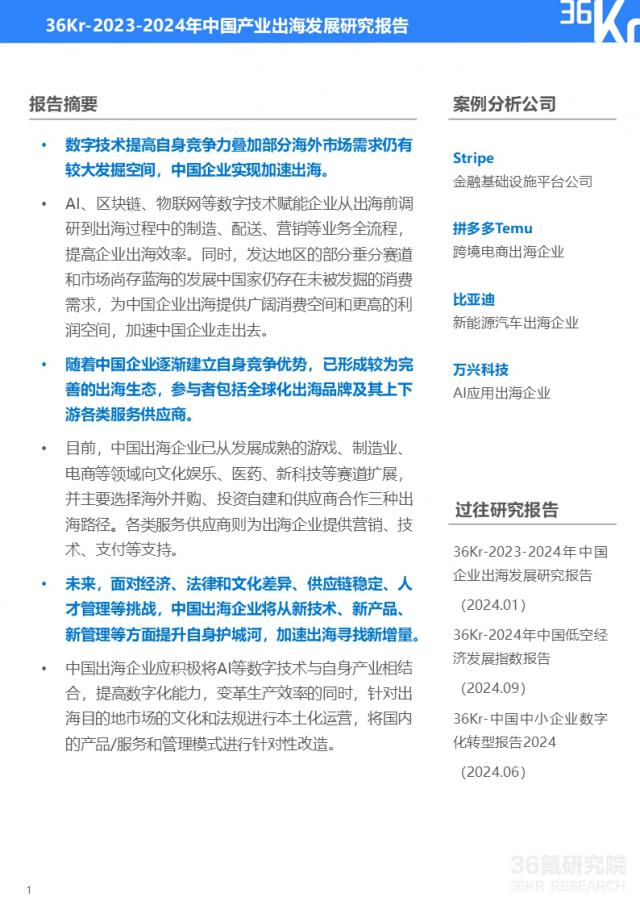 更加精彩,请关注" 36 氪星研究所微信微信官方账号。如果想得到2024 2008年中国产业出海发展研究报告,点击链接,提取代码 :o9yq,或在 36 微信微信官方账号氪研究院回复" 2024 出海时可以获得下载地址。
