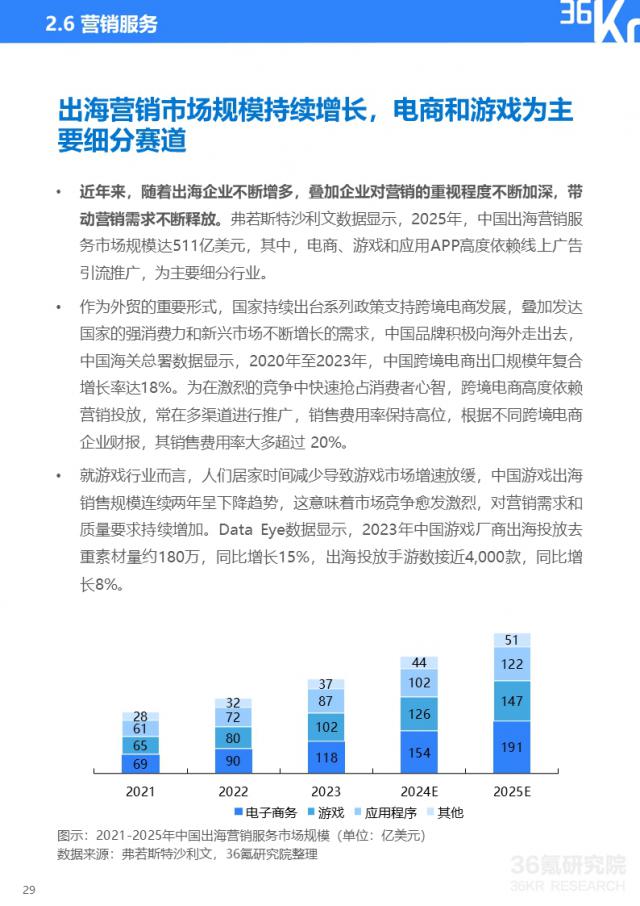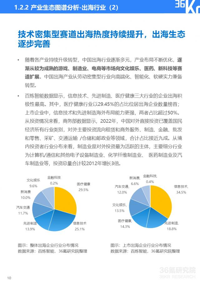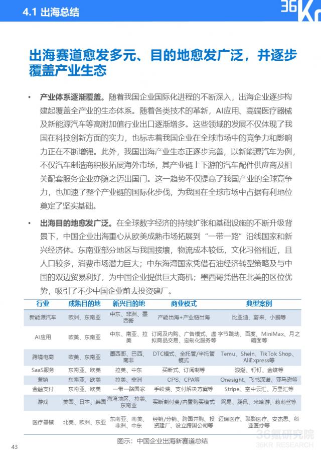 伴随着出海进入 4.0 在时代,越来越多的中国产业将触角扩展到国外市场。国外市场形势多变复杂。如何选择合适的目的地和运营策略,将中国的产业优势复制到海外,打造自己的竞争优势,成为海外企业关注的焦点。36 氪星研究所密切关注出海跑道,结合 2024 年 1 月发布的《2023-2024 2008年中国企业出海发展研究报告,结合中国产业出海趋势,总结重点产业出海现状和新机遇,为已出海或潜在出海企业制定出海战略提供参考。