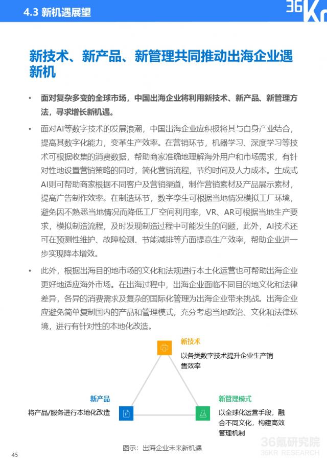 面临各种出海挑战,中国出海企业将利用新技术、新产品、新管理方法寻找新的增长机遇。