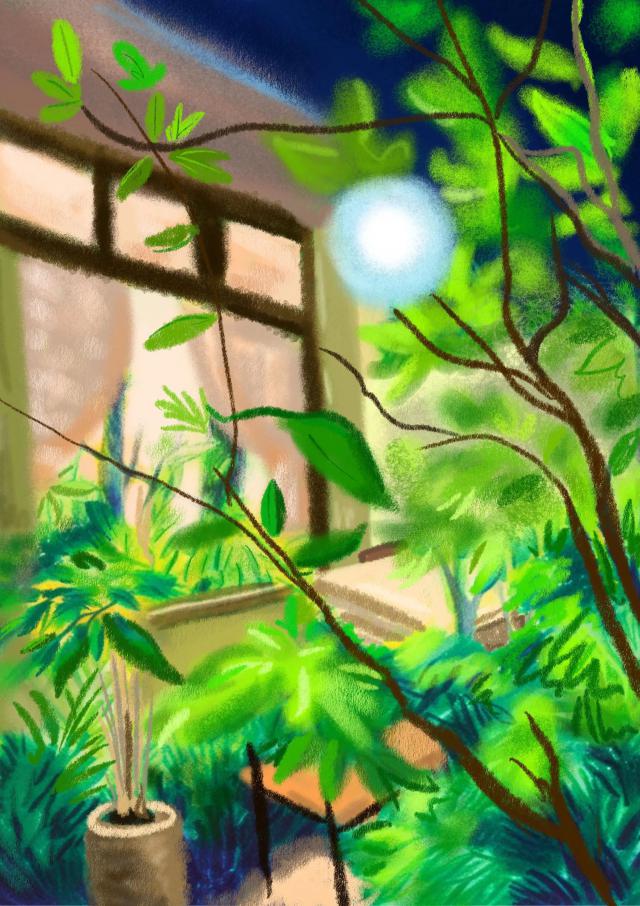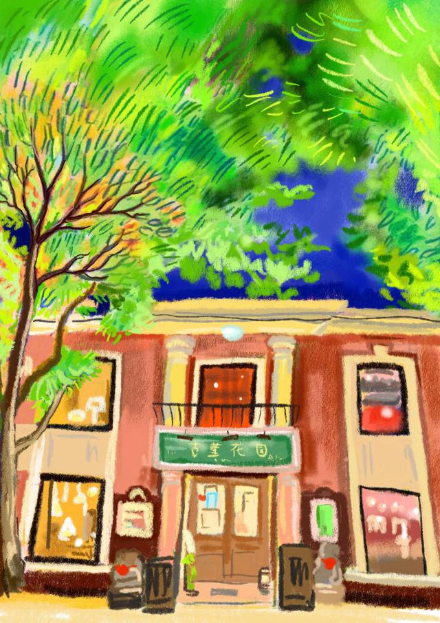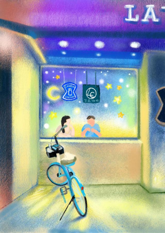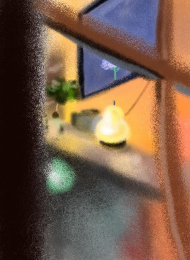 在一家商店的入口处,朦胧的台灯是夜晚的一抹人造月光。这缕微芒不疾不徐,吸引路人推门而入。