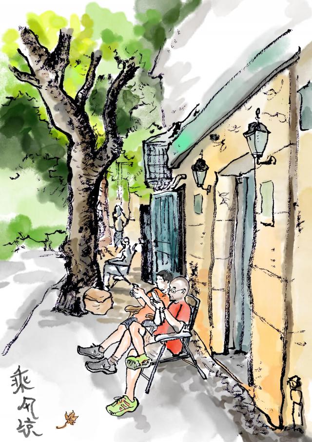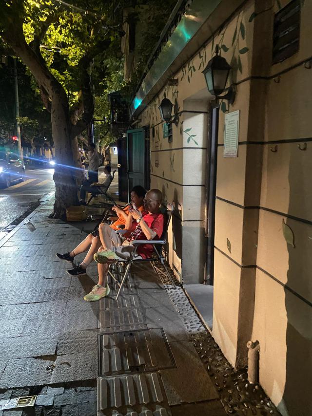 晚上,在南昌路上散步特别舒服。住在一楼的叔叔阿姨们坐在门口“乘风降温”,享受夜晚的凉爽时光。在家里有空调的时代,以前随处可见的“乘风降温”已经成为一道稀缺的风景线。