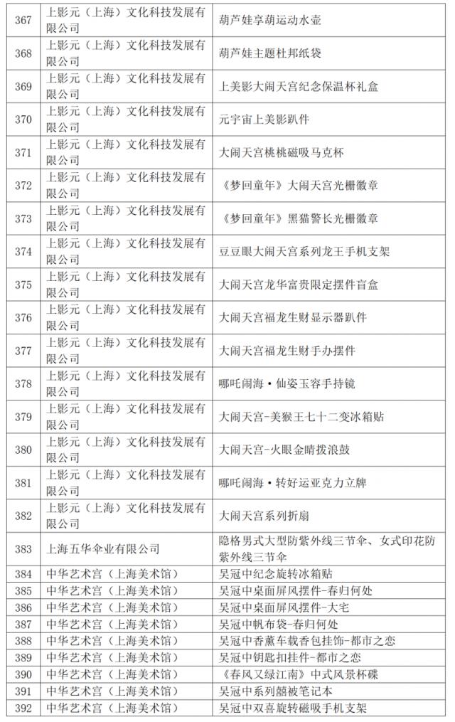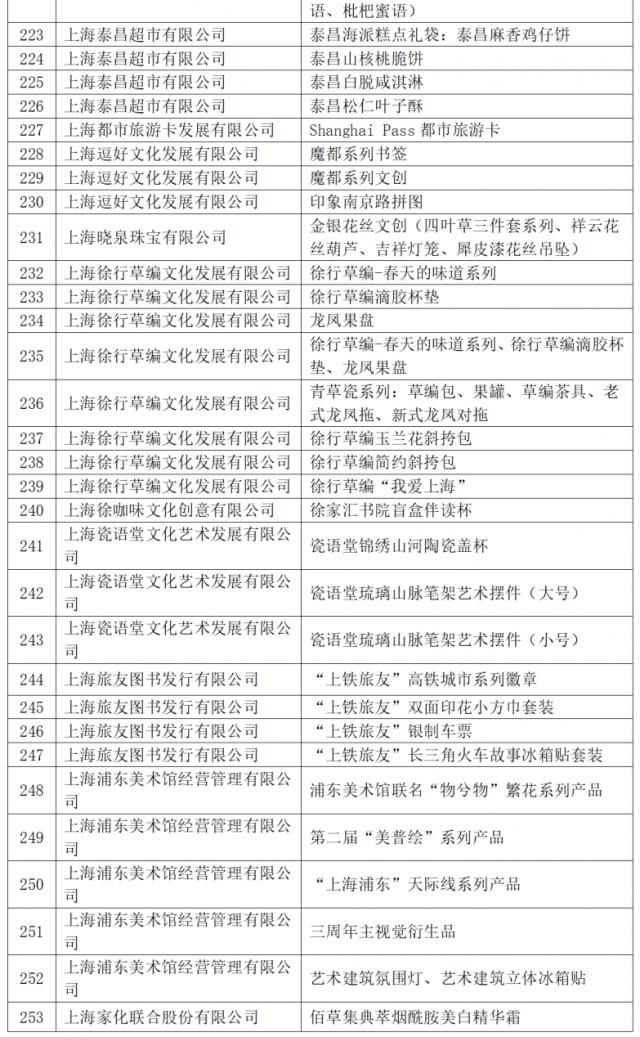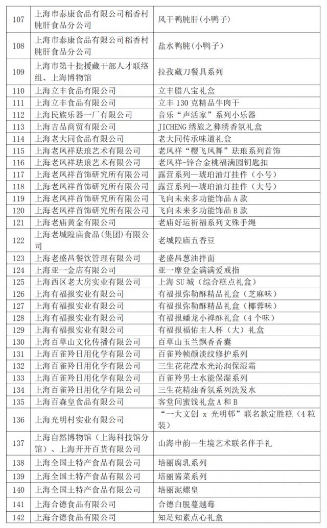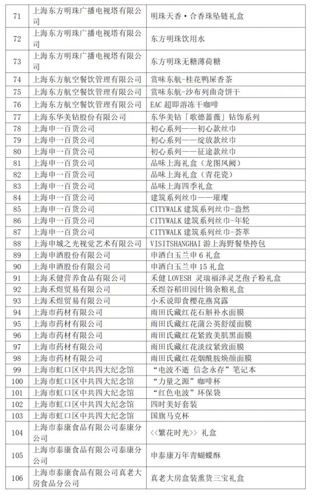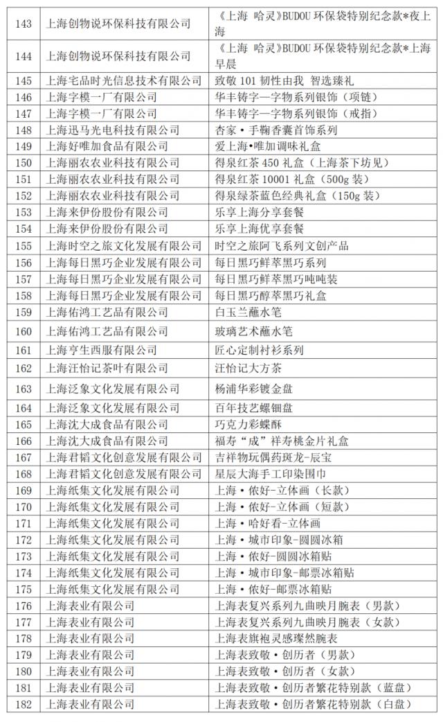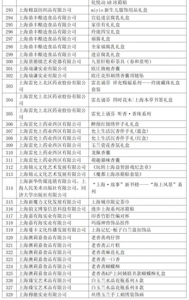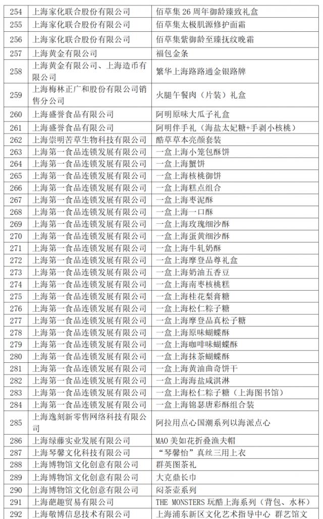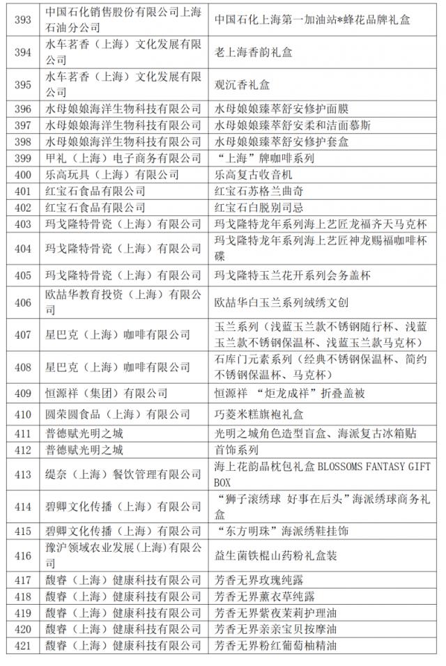 今年共有 421 件商品入选 2024 2008年“上海礼品”品牌产品。根据《上海礼品评价与标志标志管理条例(修订稿)》第八条第一款,“经评审获得‘上海礼品’评价的品牌产品自公布之日起有效期为三年,公司必须在有效期后重新申请”,2021年 自本名单发布之日起,“上海礼品”品牌商品被废除。