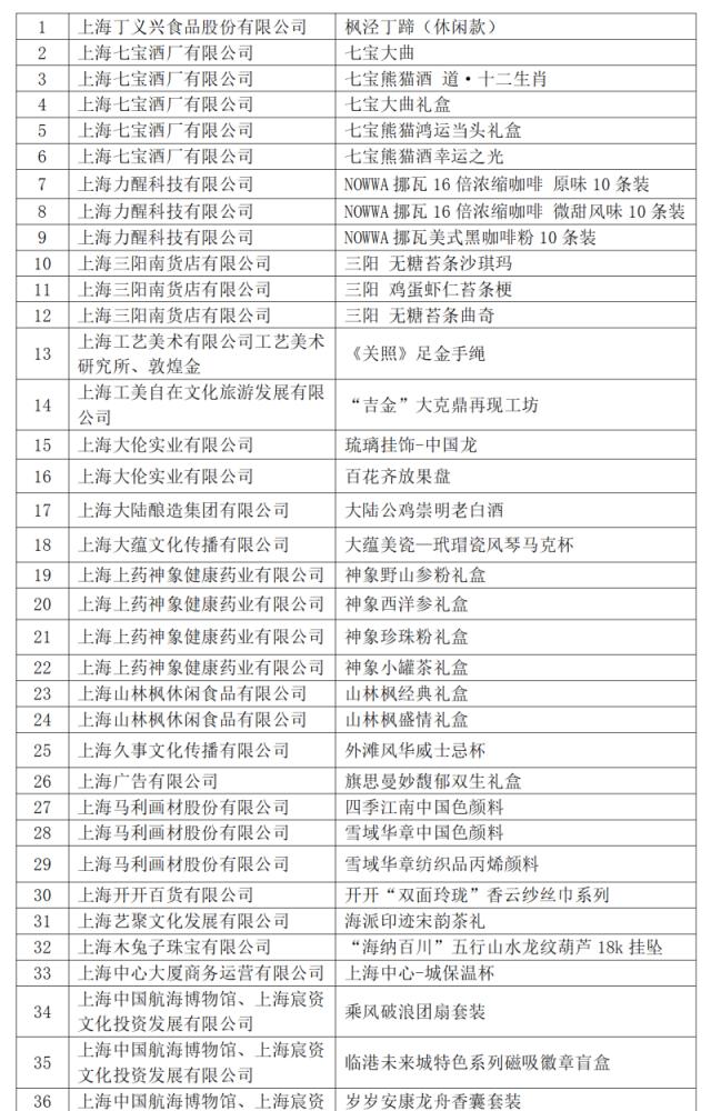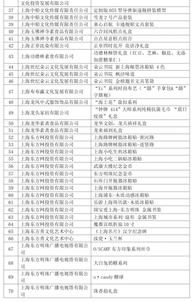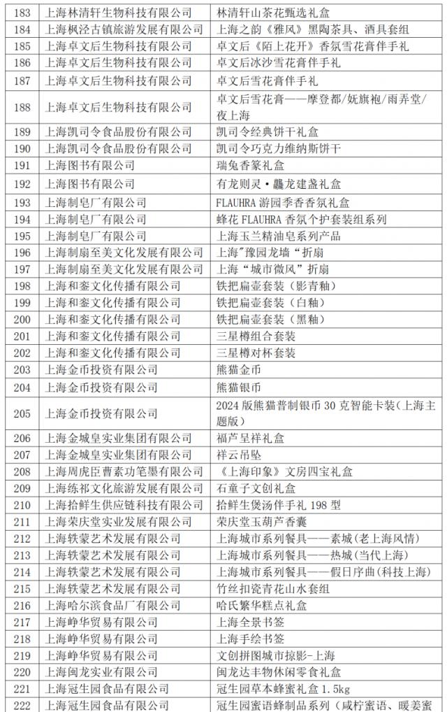 2024 年度“上海礼品”品牌产品名单详情如下(以笔画为序)