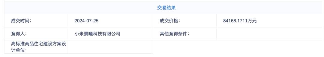 在亦庄新城YZ00-0606区域0106地块工业项目使用权竞标中,小米车辆于2024年7月25日以8.42亿元的价格成功中标。