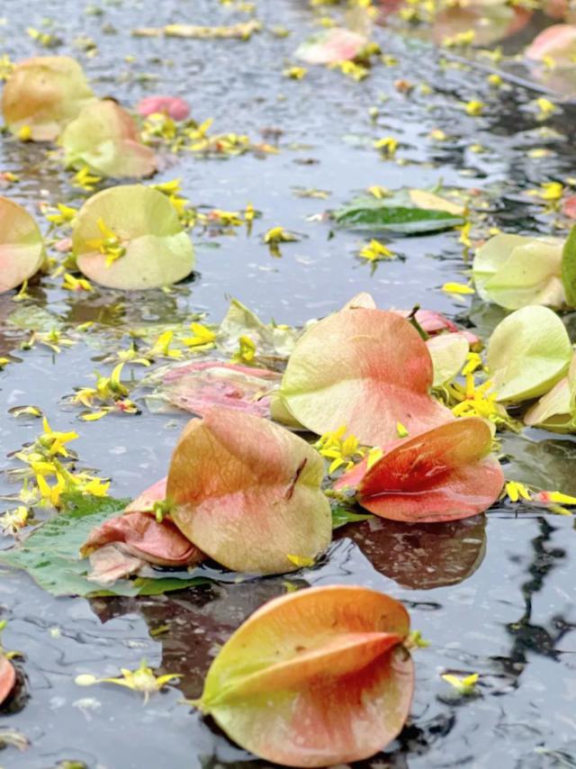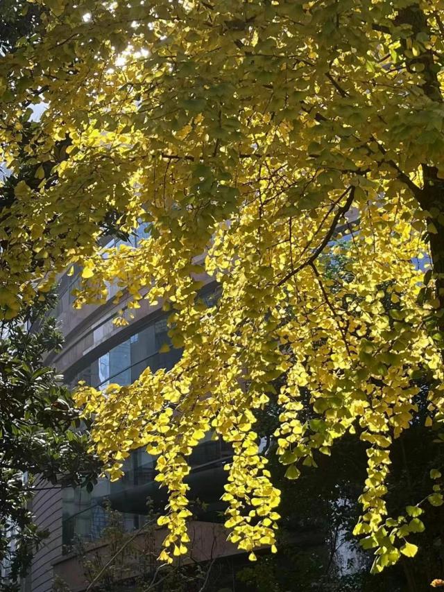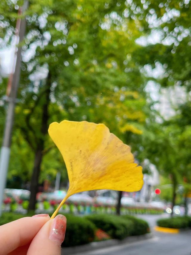 微风吹来,一片片金黄的“折扇”落得到处都是,把整个城市都铺成了金黄的样子。
