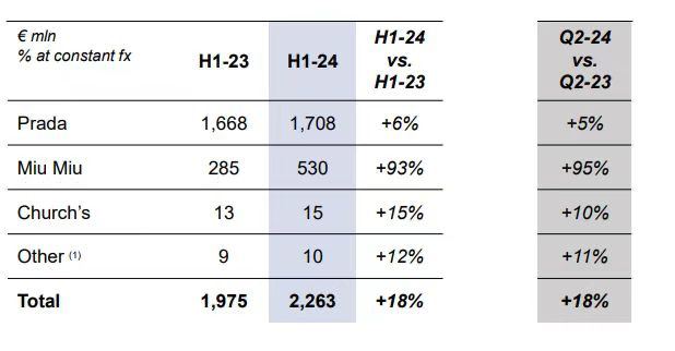当爱马仕几乎做不到的时候,Miu Miu只是在静奢下找到了这条“贵女”垂直细分赛道,一炮而红,2024年上半年营收5.3亿欧元,增长93%。