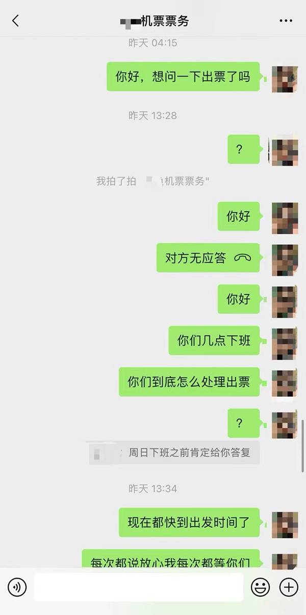 李某冒充的票务没有回复李先生的消息。本图为上海宝山警方提供
