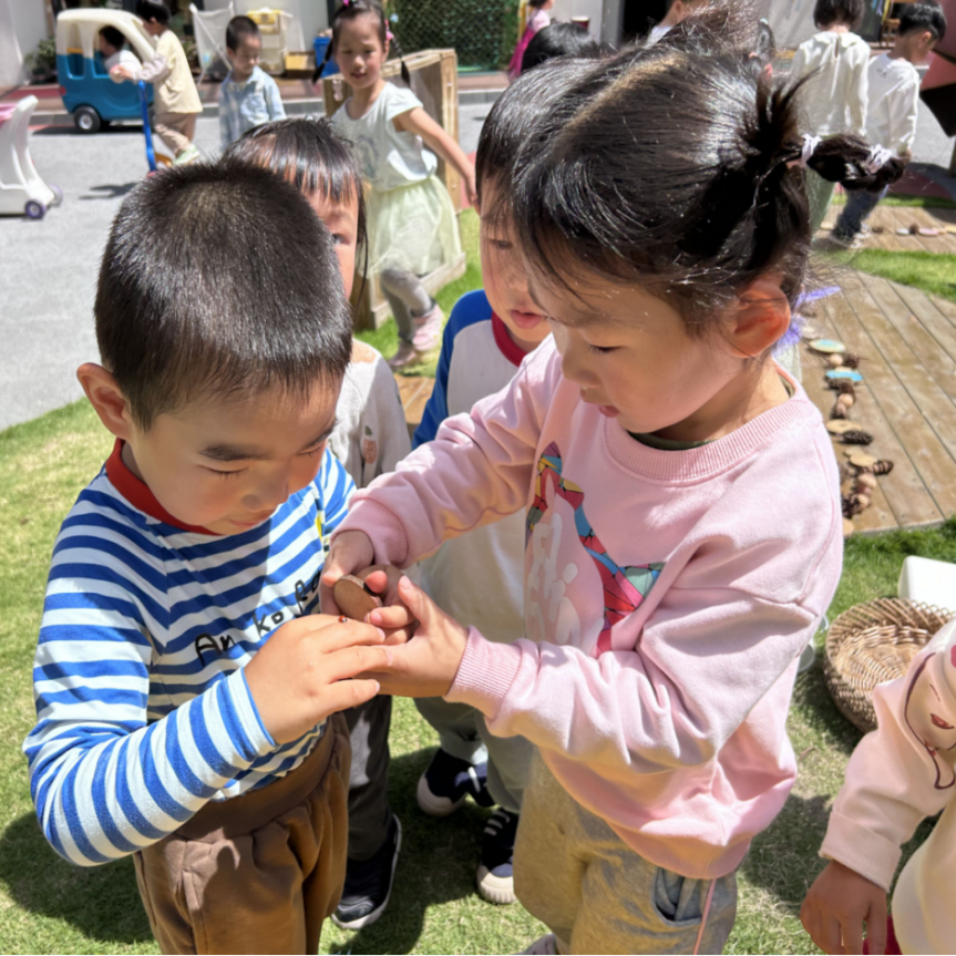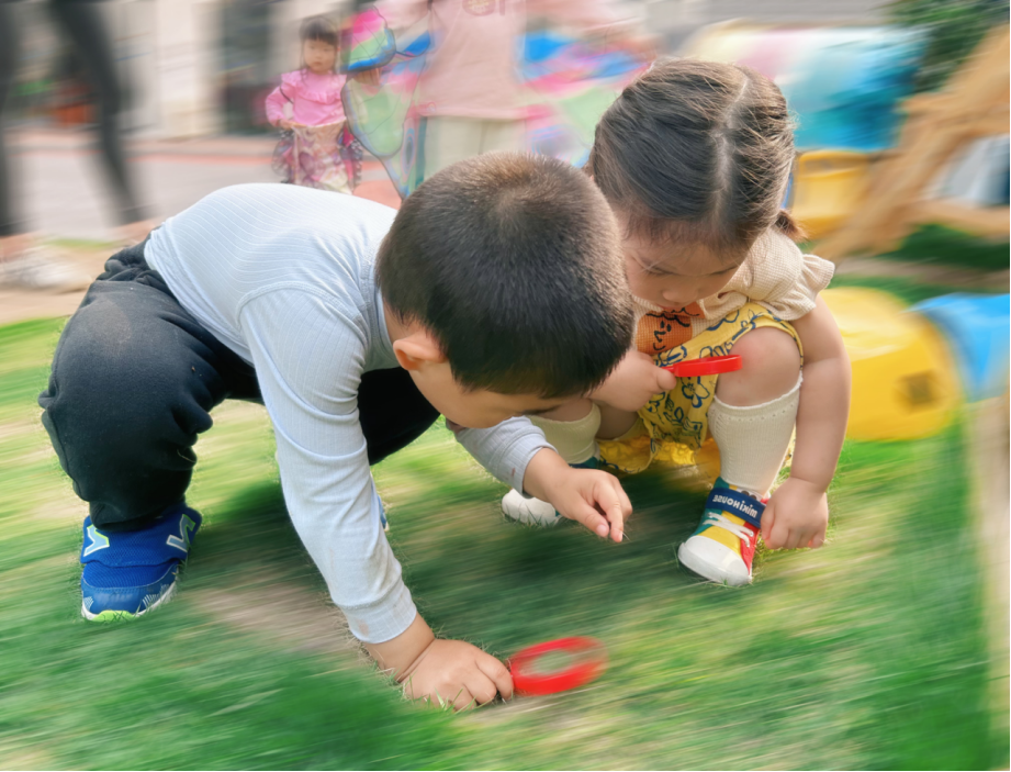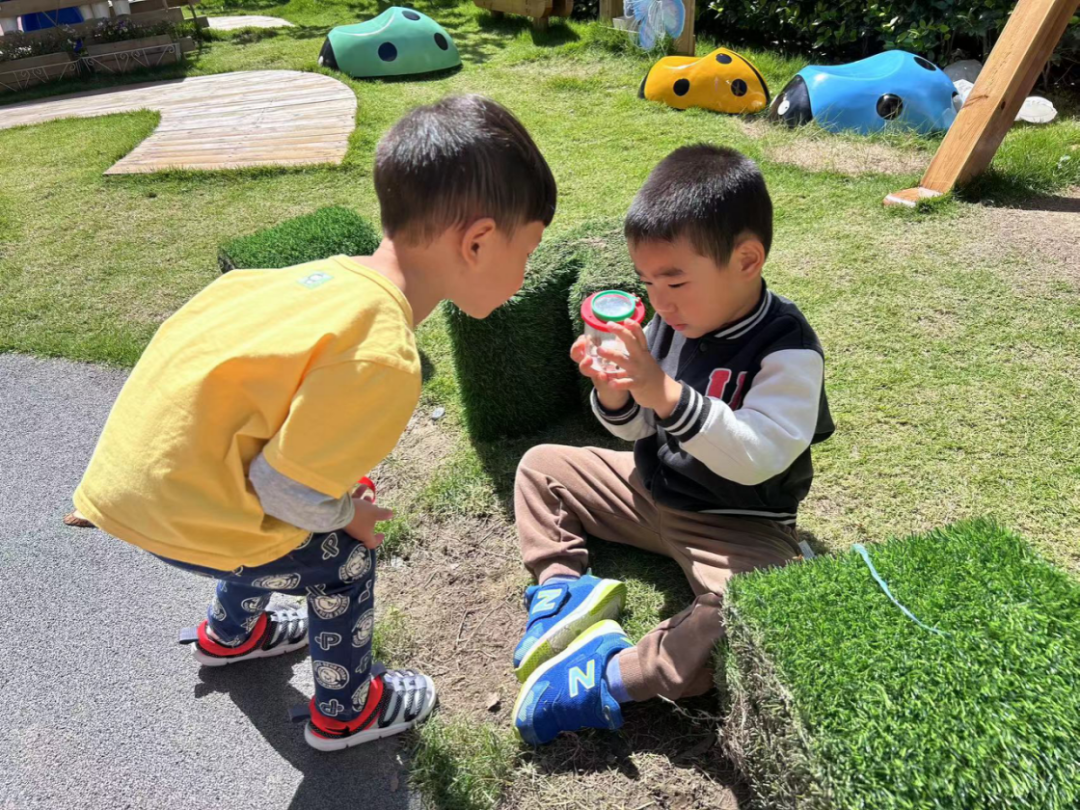 长宁试验幼儿园园长仇红燕介绍,“孩子是天生的发现者和探索者,生活在木头里的鸟儿,雨露淋湿的苔藓,雨前忙着搬砖路边的蚂蚁...这些肉眼可见、触摸可及的东西,有助于他们建立对自然的认识和理解。“因此,面对孩子们的热情,长宁实验幼儿园的老师们选择关心孩子们的好奇心,尊重他们渴望探索的本性,以安静的方式提供足够的空间和时间。与此同时,孩子们还在“寻找虫子”的游戏中加强了互动与交流,感受到了和伴侣一起玩游戏的乐趣。