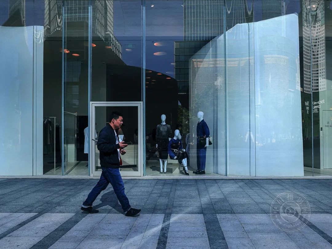 2023年5月9日,拍摄于上海南京路。上海南京西路街景以其丰富的历史背景、高端的商业氛围、独特的建筑风格和浓厚的文化氛围而闻名。