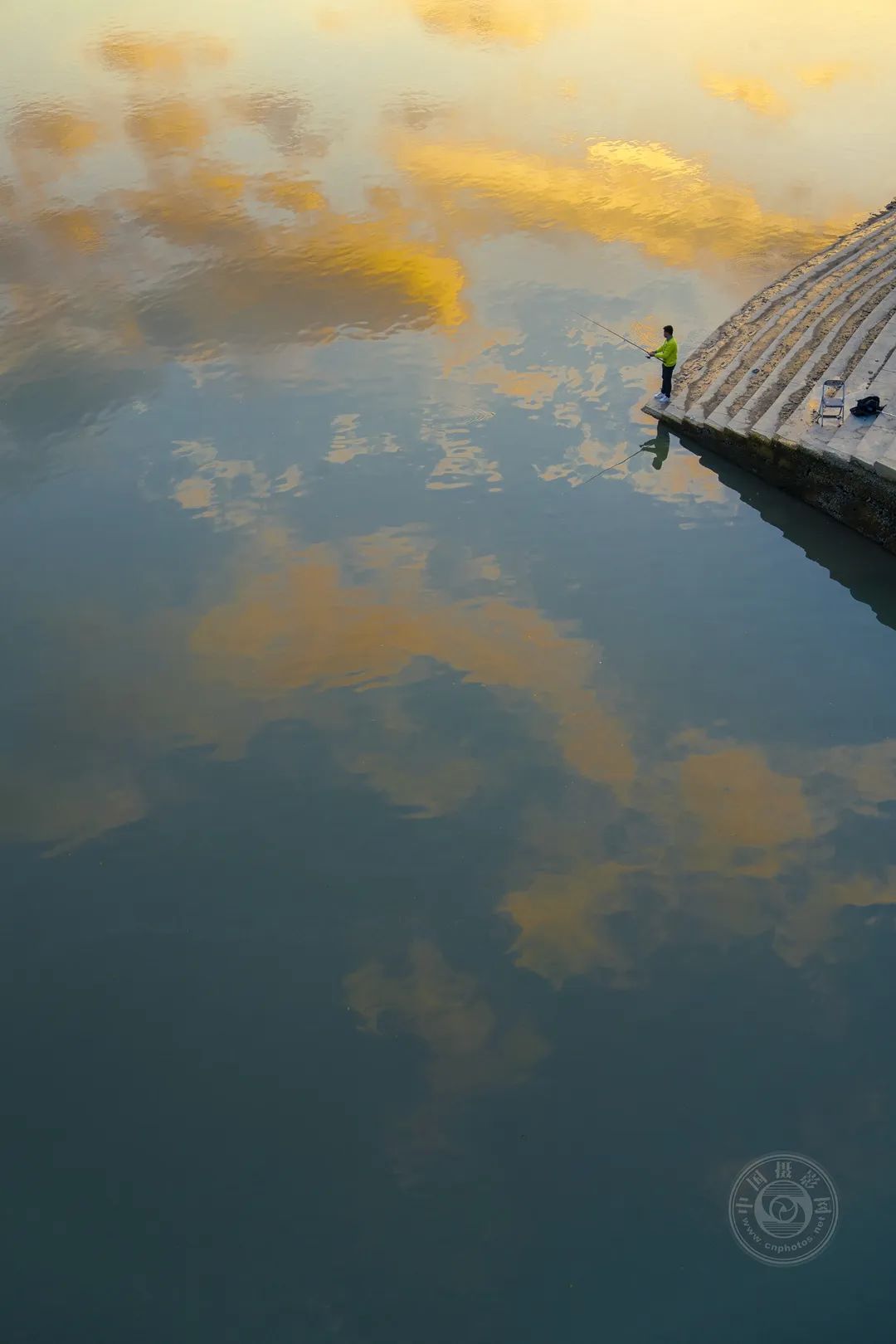 福州,2021年11月29日,晚上有人在闽江边钓鱼。