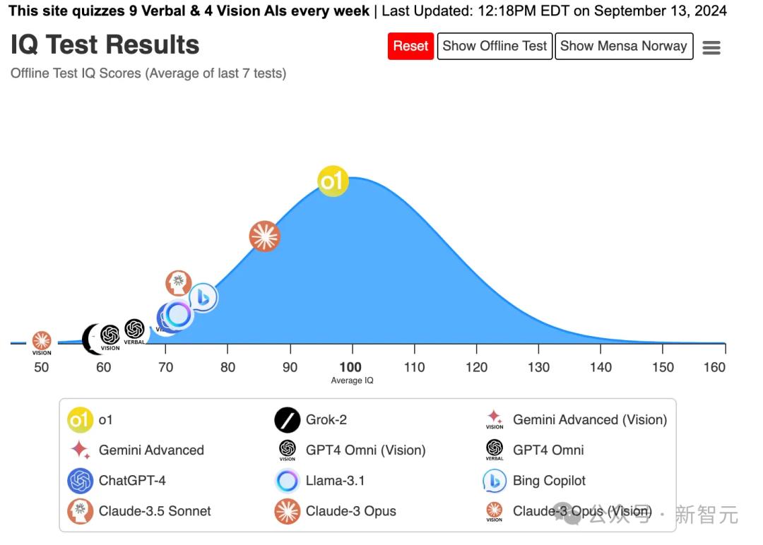 最近,在一项标准化门萨智商测试中,AI模型首次显著超过了人类智商的中位数——100。