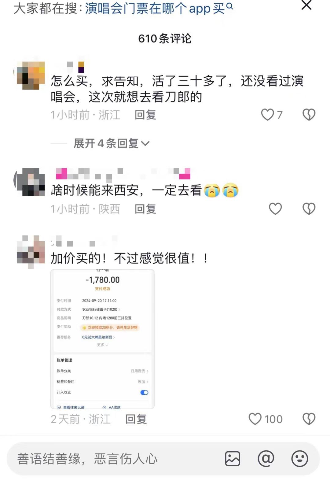 这也在一定程度上决定了刀郎的线下表演很难买到一票,溢价也很高。有粉丝拍照说“涨价买的,但是感觉值得”,订单显示1780元。也有粉丝说“我一定要抢南京1280”、成都没有抢到内场,南京这次一定要看内场。
