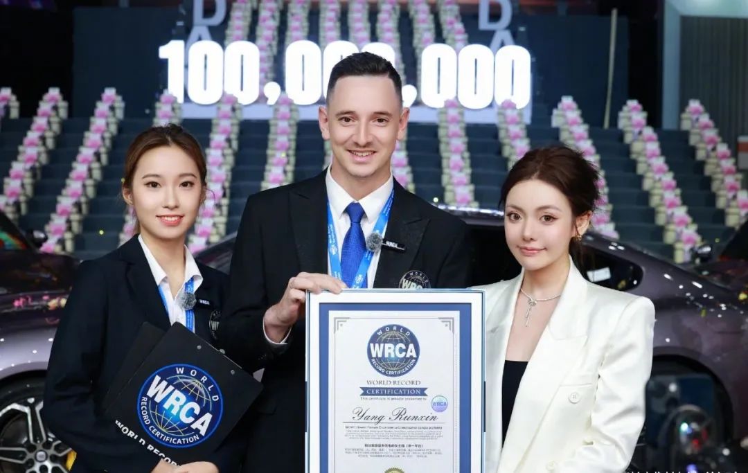 WRCA,世界纪录认证机构,现场见证她成为全网粉丝数量最多的女主播,颁发相关证书。