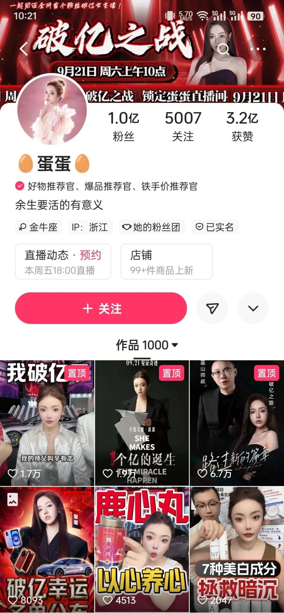 九月二十一日上午十点,辛巴徒弟,快手姐姐「蛋蛋」,开启了「破亿对决」直播专场。