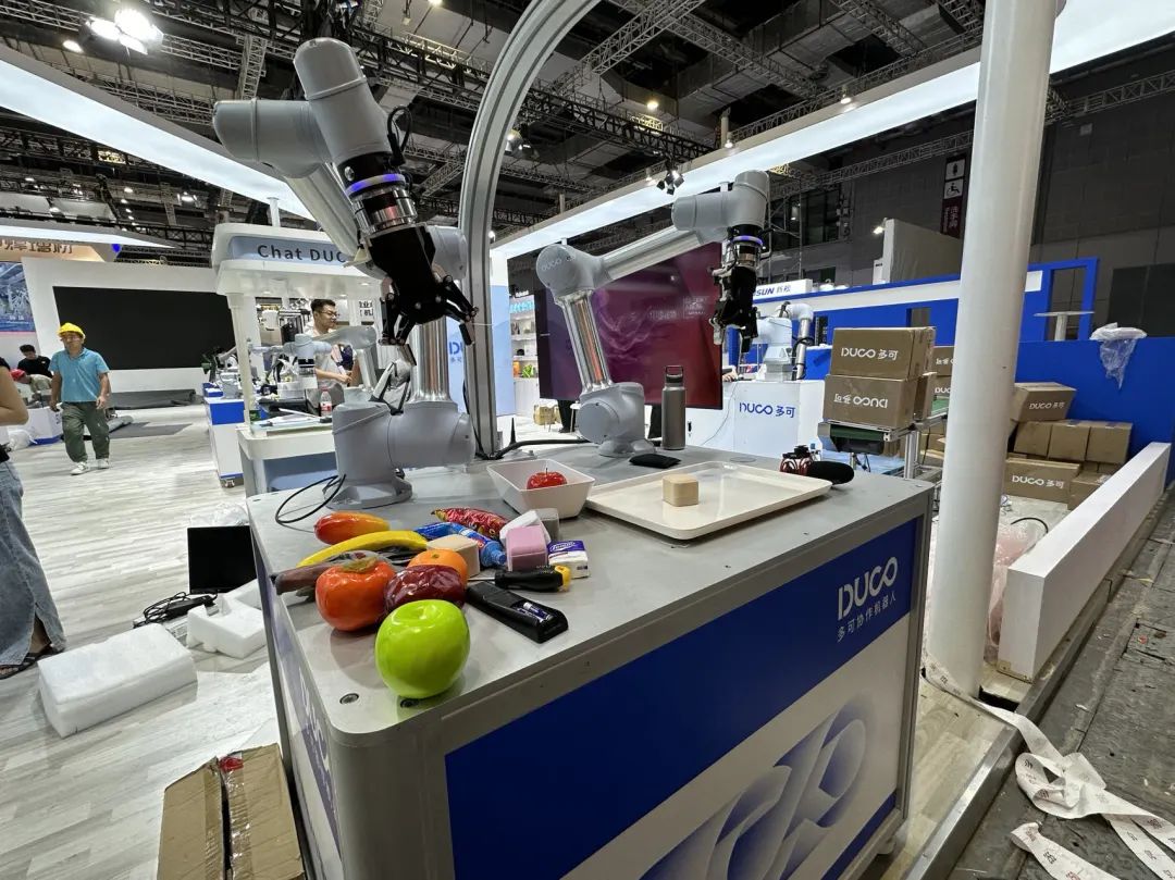 多可协作机器人在中科新松展台上携带3-30kg协作机器人和20kg协作机器人。 主题应用亮相。可以与机器人合作,将AI与大模型深度融合,实现书法机器人、摄影机器人、手臂智能抓取等。其中,通过语音命令,可以配合手臂智能抓取站准确抓取苹果、牙膏等物品,完成从物体识别、抓取计划到准确放置的全过程。