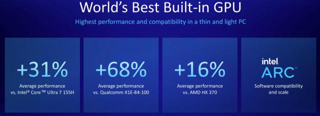 而且上述各种优势技术的叠加,也起到了作用。 Ultra 200V 的集成显卡—— Intel Arc 130V/140V, 与上一代相比,集显性能竟然有 30% 性能飙升。