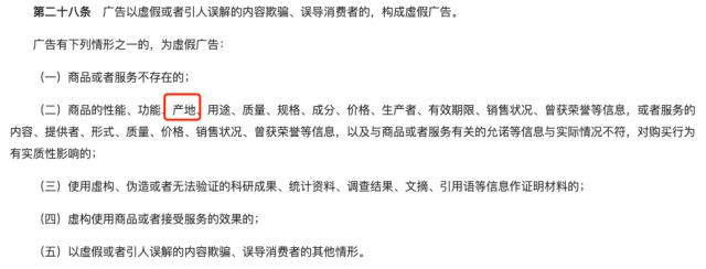 但是根据《广告法》第二十八条,也确实提到了产地信息与实际情况不符,对购买行为有实质性的影响,也可以算作虚假宣传。