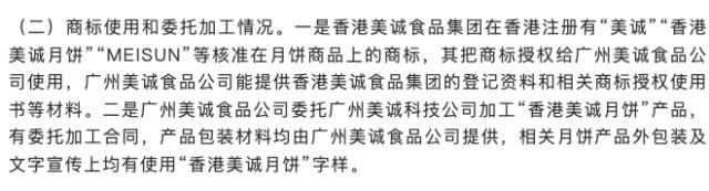 其次,广州美诚食品有限公司生产的月饼,以香港美诚月饼的品牌名称,在程序上似乎没有太大问题。