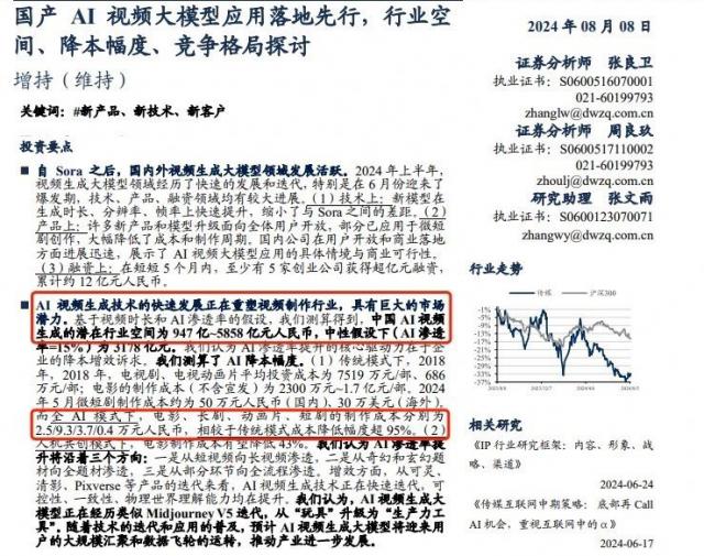 东吴证券计算,国内 AI 可以实现视频隐藏的行业空间 5800 超过1亿元,而在全部, AI 与传统方式相比,模式中影视剧的制作成本可以降低超过传统方式的成本。 95% 。