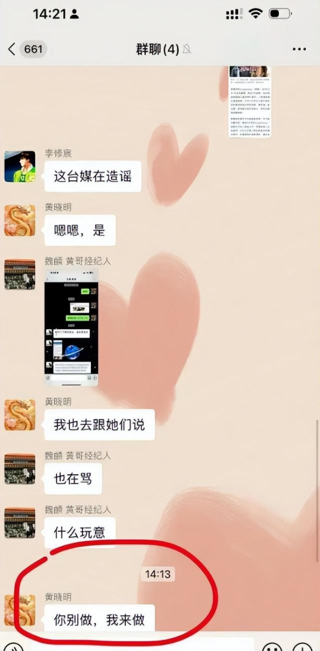 很快,叶珂发布了一张群聊截图,黄晓明正在加紧处理这场舆论风波,以平息局势。