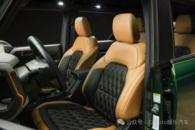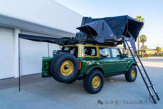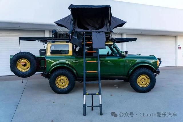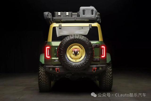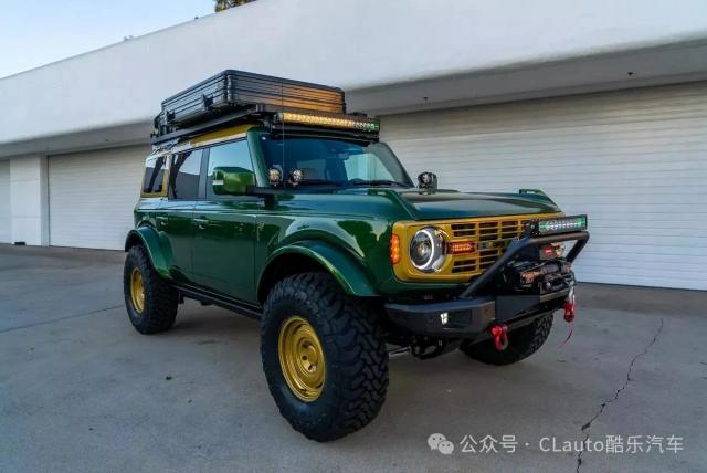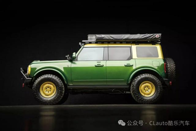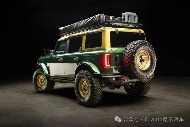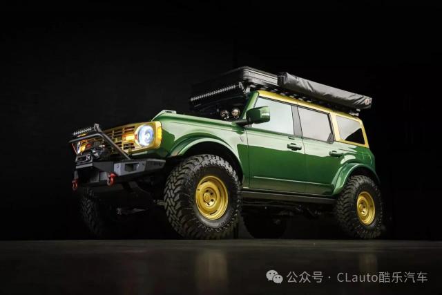 这款特别版 Bronco 就是在摇滚乐队 Imagine Dragons 在梦龙乐队的帮助下创作,涂装选用 Eruption Green Metallic 金绿色,配有金漆格栅和车顶,兼顾复古风格和现代感。