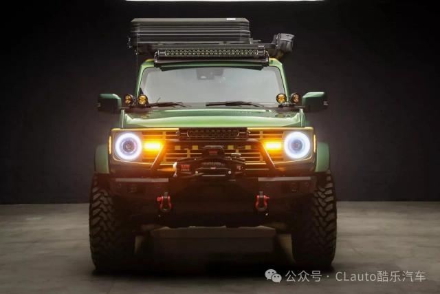 尽管普通的 Bronco 虽然越野能力已经很出色了,但是这个已经改装过了。 Bronco 将更出色。Galpin 前后为它安装 Body Armor 钢制保险杆,新的牛头杠,Warn VR Evo 12s 绞盘和 LED 灯条。