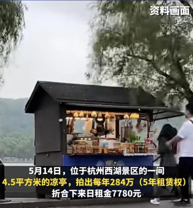 以前西湖两个小商亭因为高价租金爆红,只有 4.5㎡商亭,租出 284 万 / 年房租