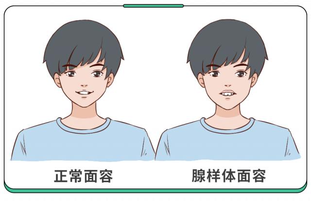 长时间被迫用嘴呼吸会导致面部变形,长成所谓的“腺样体脸” :