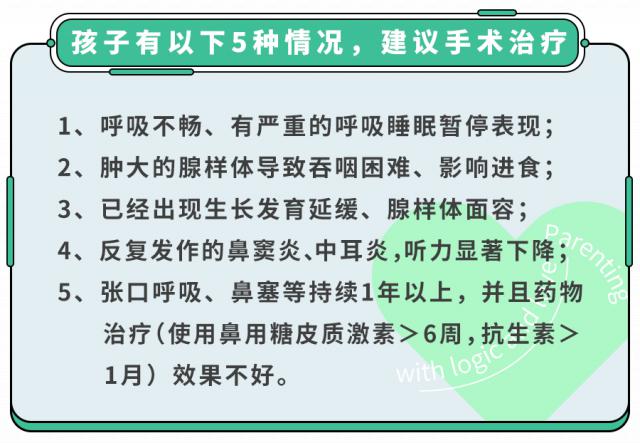 确诊腺样体肥大后,是否需要手术也要根据情况来决定。↓↓