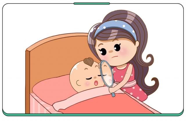 在孩子睡着的时候,拿一面小镜子,放在宝宝的嘴和鼻子之间。假如嘴唇的位置很快就会出现雾气,那基本上就不会跑了:口呼吸。