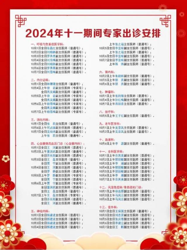 2024 2011年石景山医院专家出诊安排——