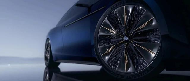 概念车的前后设计有贯穿式大灯,大灯延伸到车身侧面。车身长度也更大,长度超过 5 米,配合轮毂尺寸达到 21 英尺。