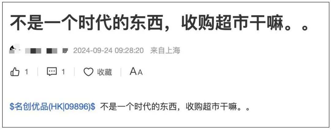 在社交平台,亦有网友表示,“不是一个时代的东西,收购超市干嘛。”