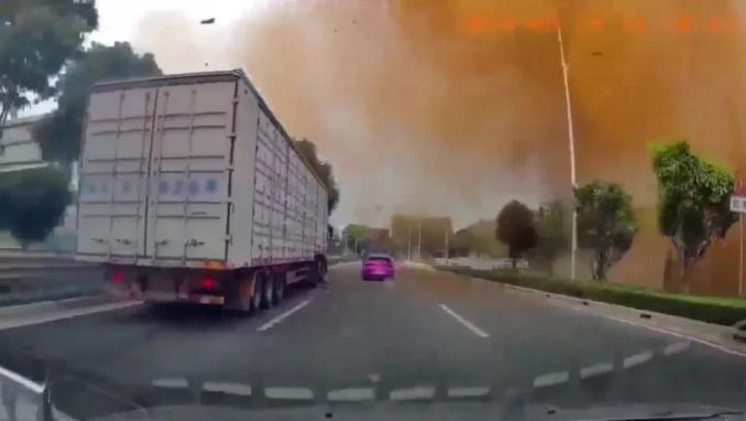 根据监控画面的多角度,一团黄色的烟雾从路面喷出,然后落在行驶的窗户上,瞬间遮挡了视野。爆炸点是挖掘机在工作,旁边有围栏。