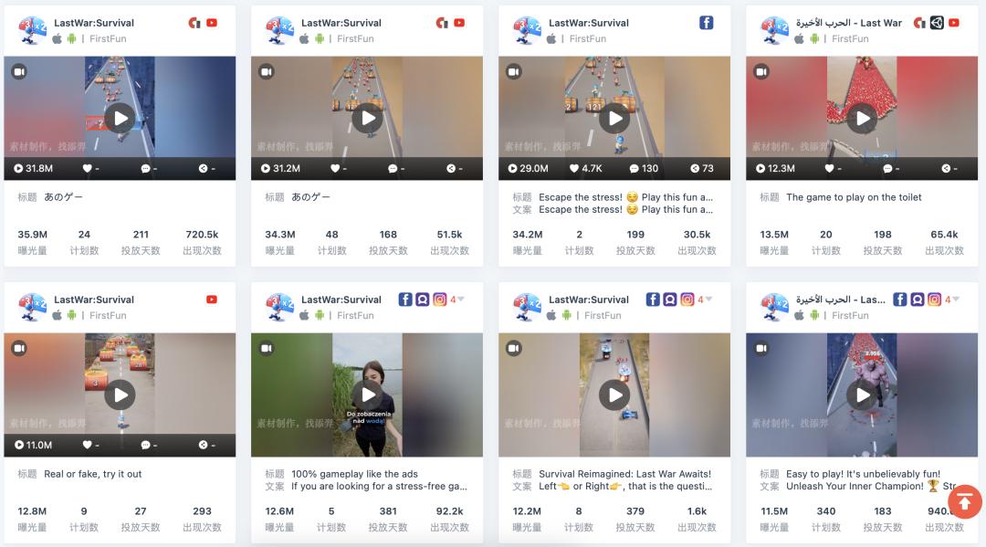 《Last War》:本身就是针对“加减乘除冲关跑酷”的材料进行产品创作,在产品上线之初就投入了大量的相关材料,并且在今年爆发。