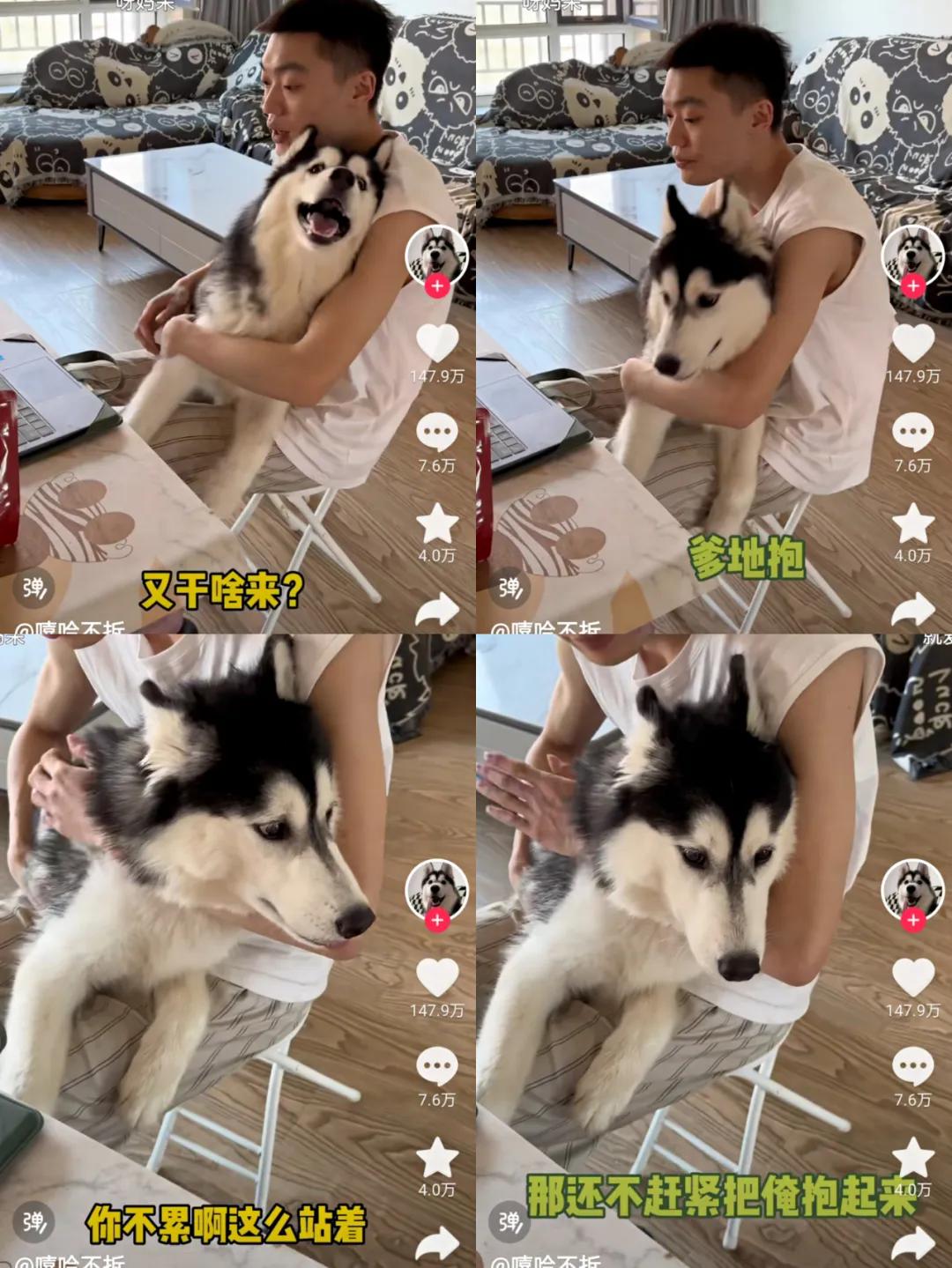 例如@嘻哈不拆 他是抖音记录可爱宠物日常生活的创作者。三只不同品种、不同性格的小狗各有特色,吸引了近270万粉丝的关注。尤其是一个叫“不拆”的哈士奇,几乎只粘着自己的“父亲”,忽略了对“母亲”的爱,被粉丝戏称为“爹宝狗”。