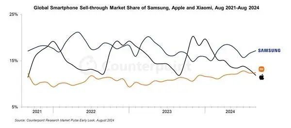 2024年8月,小米13和小米14系列已成为小米10代以后销量最好的旗舰机,小米14将有机会进一步挑战小米10。 依据市场调查机构 Counterpoint Research,8月份小米全球市场份额超过苹果,成为世界第二大手机品牌,仅次于三星。