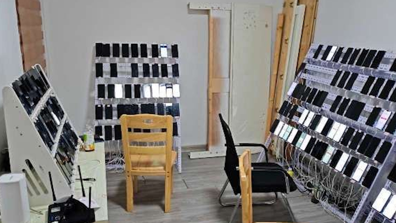 犯罪团伙工作室,放置数百部手机。上海浦东警察 供图