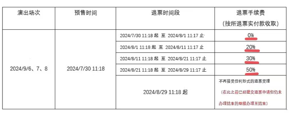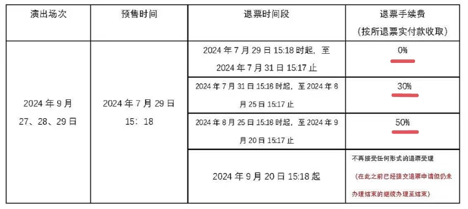 摩天轮(第三方票务渠道)的退票规则是,平台预售时间开始后48小时内购买退票的退票手续费为0.6%,平台预售时间开始后48小时至售票渠道关闭前3天收取20.6%的手续费,售票渠道关闭前3天停止退票。