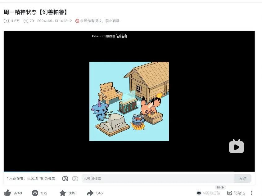 B站内容截图《魔兽帕鲁》,艺术风格与宝可梦相似。