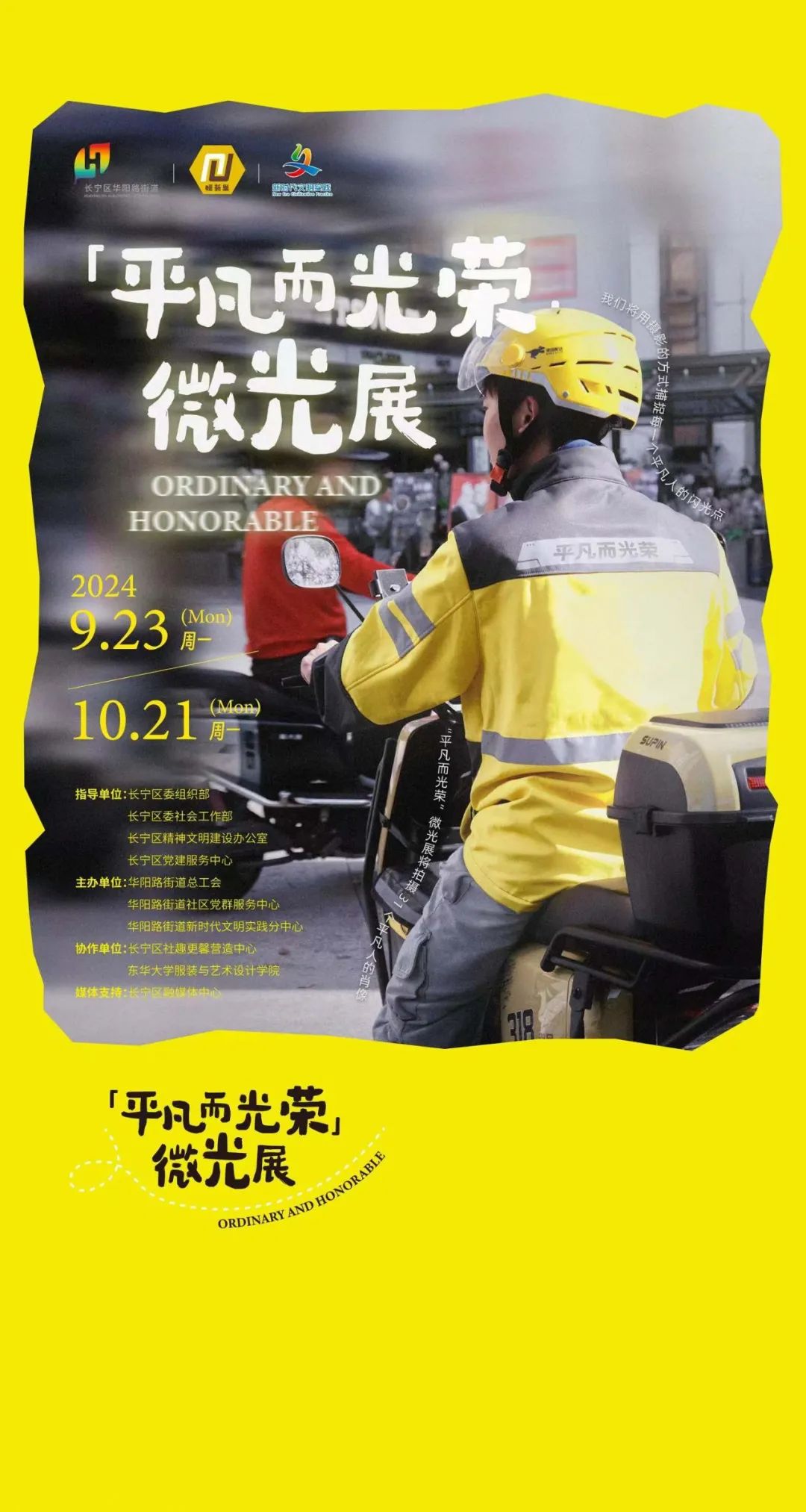 开放当天,“暖新巢”还举办了《平凡而光荣》微芒展,展览聚焦城市各行各业的普通人,通过摄影展示他们的奋斗故事。长宁区媒体中心与东华大学环境设计系的学生携手,用镜头捕捉了50多名环卫工人、送货员等多个奋斗者的动人瞬间,让更多的人看到和感受到自己的辛勤工作和奉献,让更多的人了解这些“平凡而光荣”的人。每天10月底,“平凡而光荣”微芒展将持续到10月底。:00—17:00开放,欢迎广大市民前来观看展览。