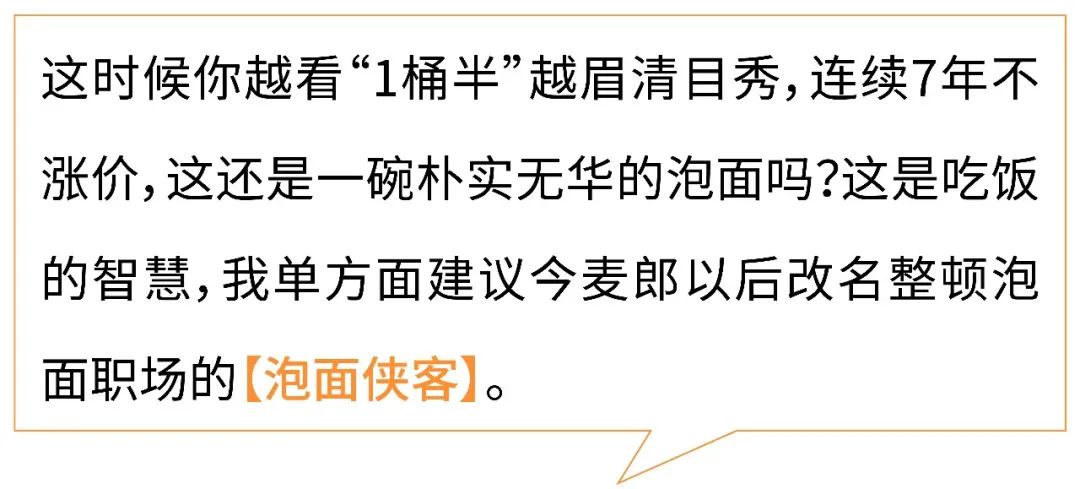 但是凡事都有例外,比如,今天麦郎的一桶半连续七年没有涨价,在今天的世界里听起来就像科幻小说一样。。