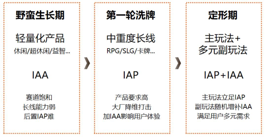 IAA类游戏在游戏快速增长的早期阶段逆势而上,实际上在底层逻辑上,与每个周期的初始阶段相同。