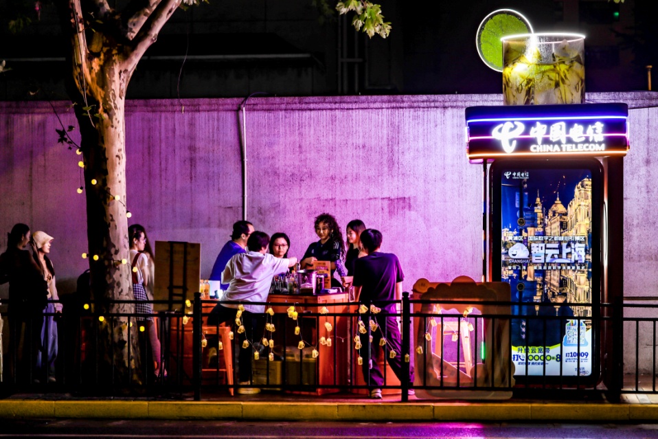 “电信公司开‘酒吧’?这样可以吗?”几天前,在长乐路的夜晚,一个迷你酒亭悄然开放。在熟悉这个地区的年轻人眼里,这是一个意想不到但容易接受的跨境动作。“乍一看,我觉得不可思议,但当我再次认为这是在上海时,有什么不好的?我只想说,太酷太辣了!”
