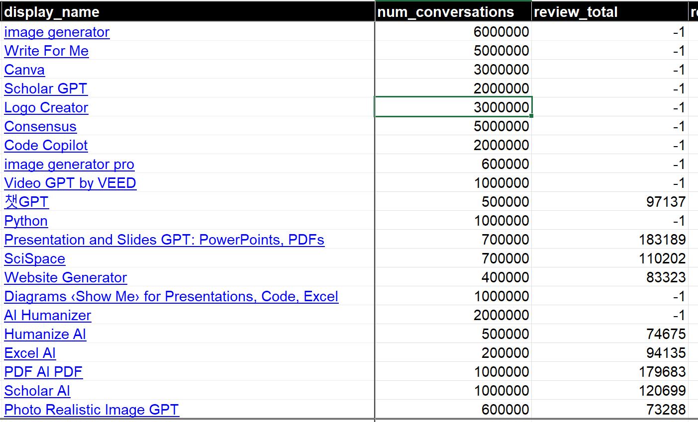使用次数最多的GPTStore应用。