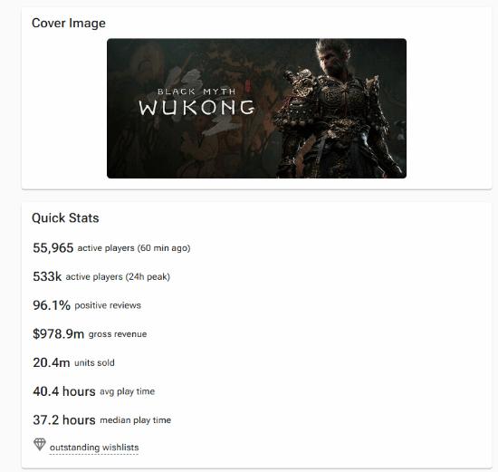 公司VG数据分析 根据Insights的最新数据,Steam平台上的“黑神话:悟空”销量已达2040万份。