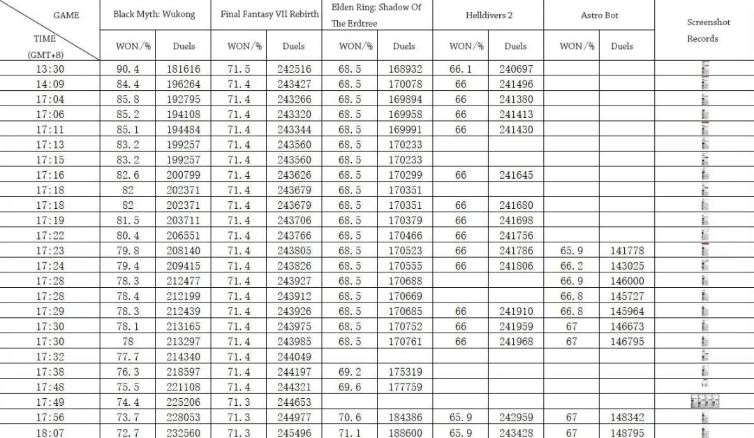 国产之光《黑神话:悟空》在国外众多游戏中排名第一,PK胜率高达90.4%,最终幻想7在断层中排名第二。