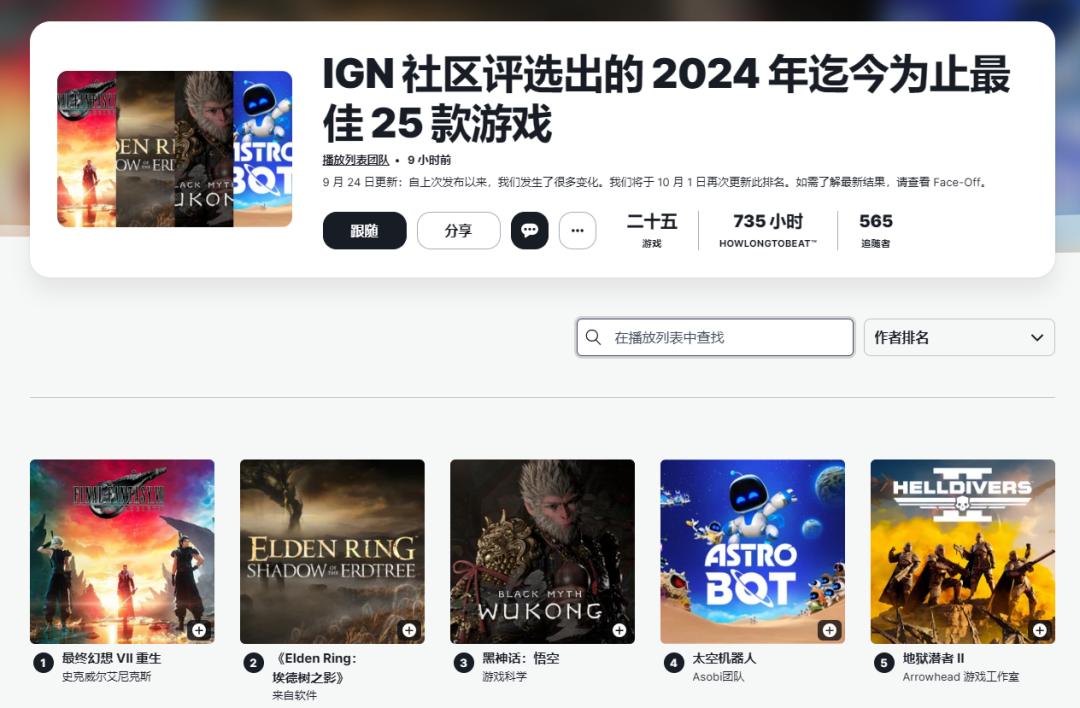 在最新的IGN官网页面中,只剩下一个「专业评论家」投票链接,黑神话一开始排名第五,现在排名第三。
