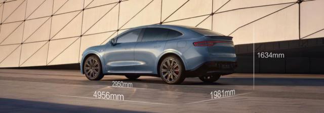 智界 R7 创意设计,打造轿跑车 SUV 空间革命。车身的长宽高分别是 4956mm × 1981mm × 1634mm,轴距 2950mm。全车沿用 OneBox 造型设计构思,通过 C 点移位、D 抬起点,重塑轿跑 SUV 空间体验。